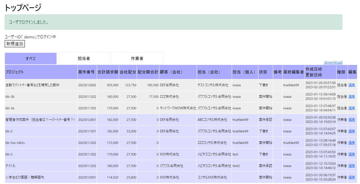 自身が担当者もしくは稼働者になってる案件の両方を適切な権限で表示します。
